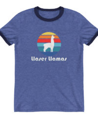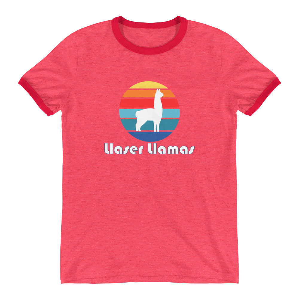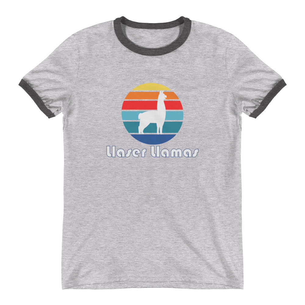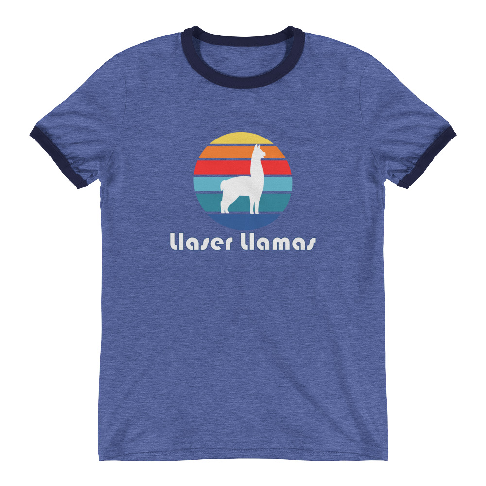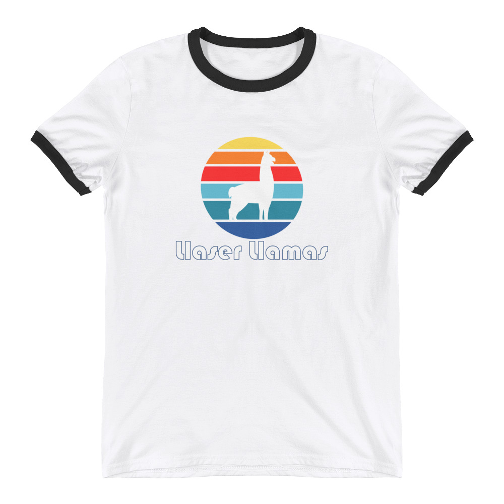 The awesome retro ringer tee features the Llaser Llamas Circle logo and is available in a variety of cool colors.