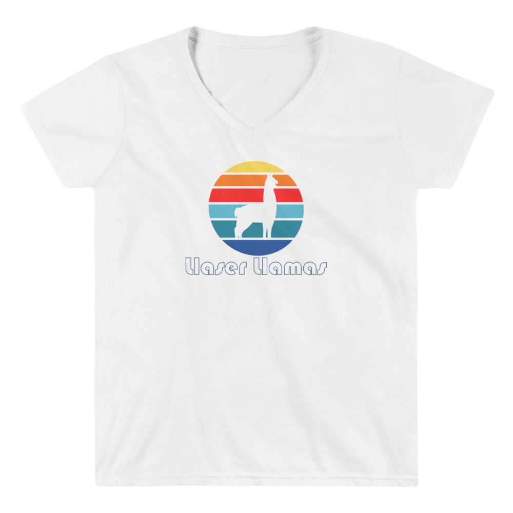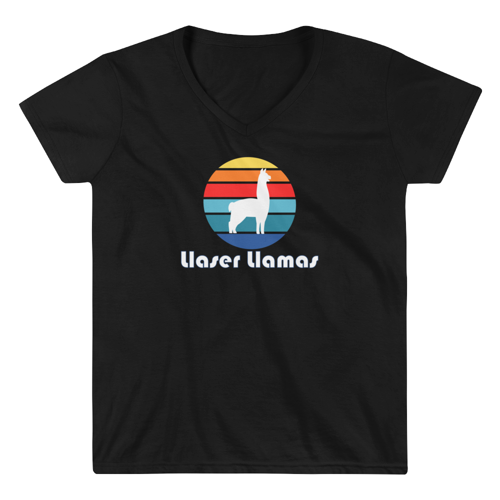 Lladies like this stylish V-neck tee featuring our retro Llama Logo.